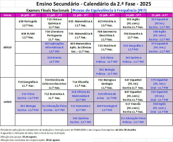 Exames e Provas Finais Última atualização: 15-07-2025 18:14